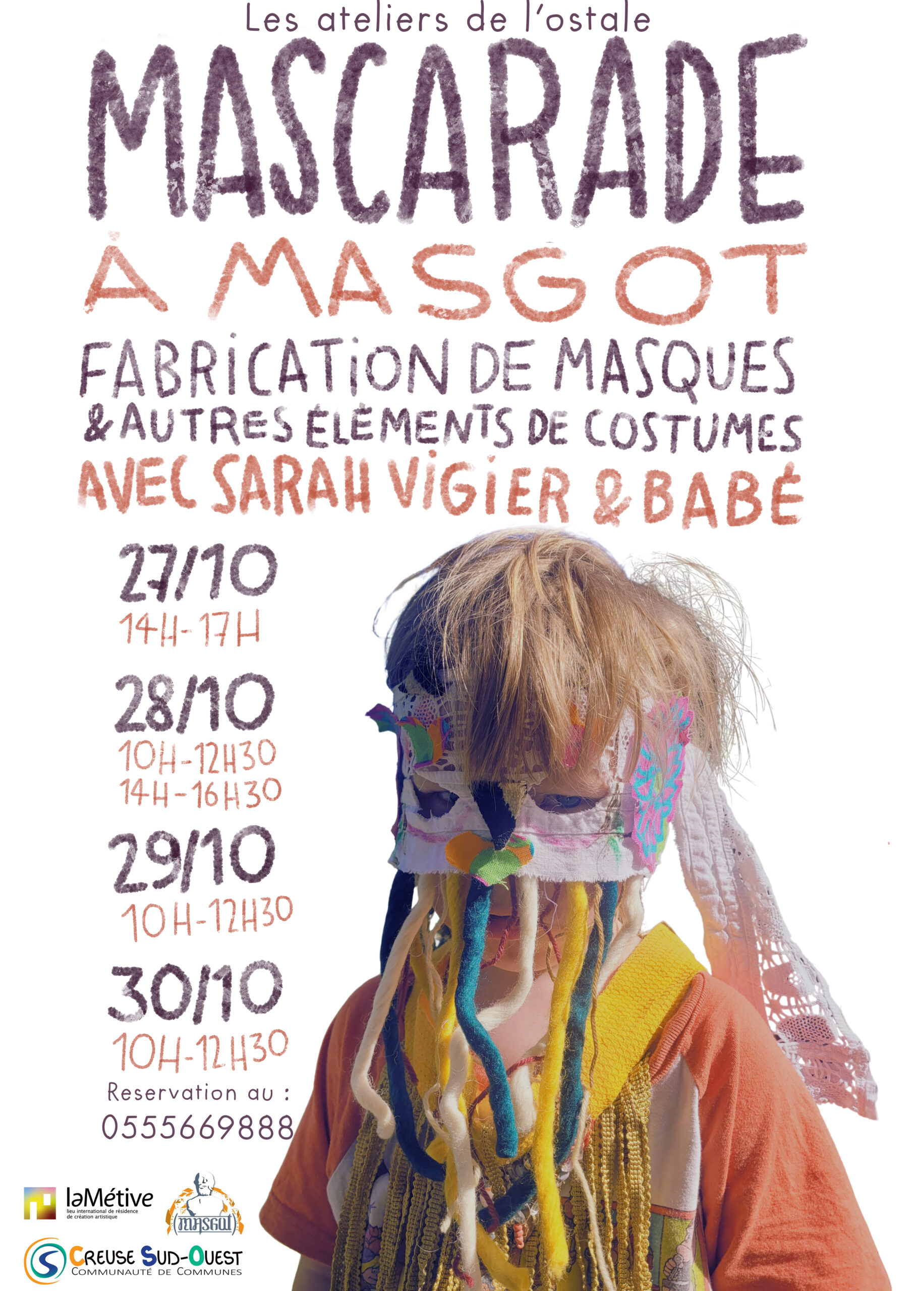 Du 27 au 30 octobre 2025 se tiendra des ateliers de fabrication de masques et autres éléments de costumes à Masgot avec les artistes Babé et Sarah Vigier.